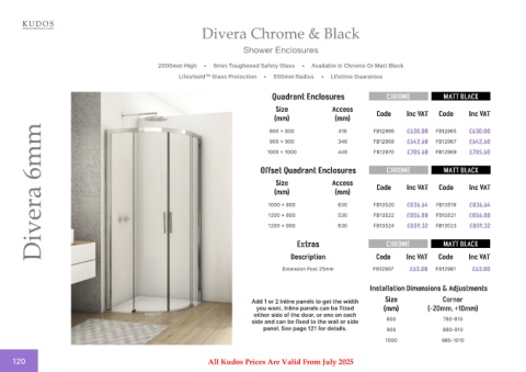 2000mm High • 6mm Toughened Safety Glass • Available In Chrome Or Matt Black