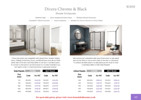 For up-to-date prices, please visit: www.formulabathrooms.co.uk 121