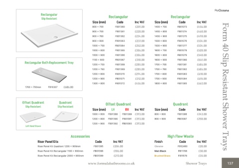 1700 x 700mm FB10307 £606.00 Form 40 Slip Resistant Shower Trays