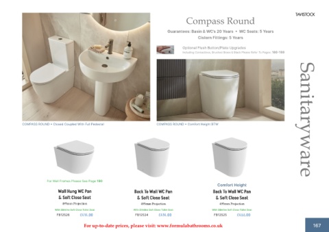 For up-to-date prices, please visit: www.formulabathrooms.co.uk 167