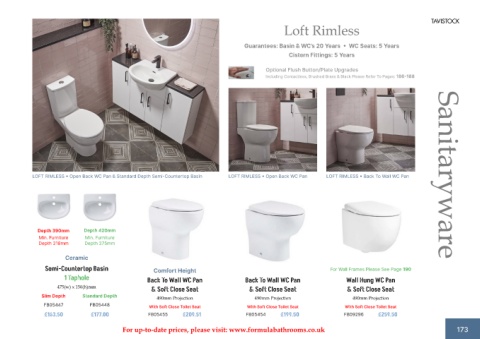 For up-to-date prices, please visit: www.formulabathrooms.co.uk 173