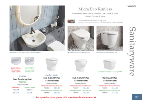 For up-to-date prices, please visit: www.formulabathrooms.co.uk 177