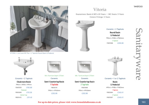 For up-to-date prices, please visit: www.formulabathrooms.co.uk 183