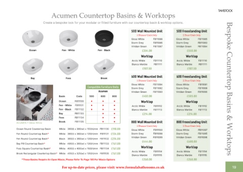 For up-to-date prices, please visit: www.formulabathrooms.co.uk 19