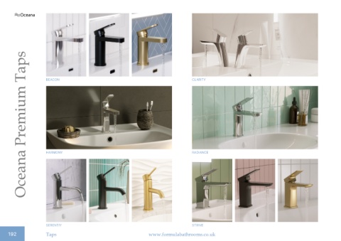 Oceana Premium Taps BEACON CLARITY HARMONY RADIANCE SERENTIY STRIVE 192 Taps www.formulabathrooms.co.uk