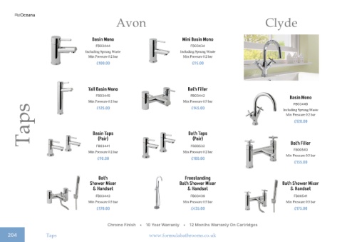 Taps Basin Taps Bath Taps Min Pressure 0.2 bar
