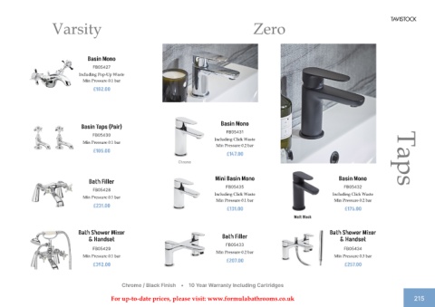For up-to-date prices, please visit: www.formulabathrooms.co.uk 215