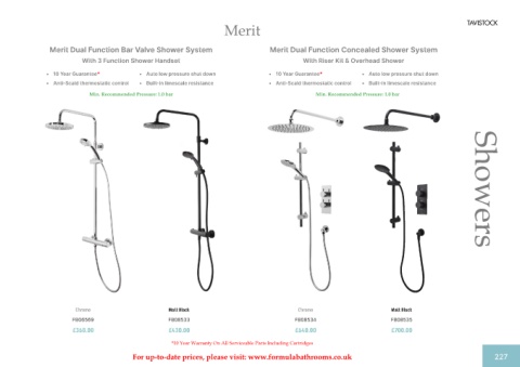 For up-to-date prices, please visit: www.formulabathrooms.co.uk 227