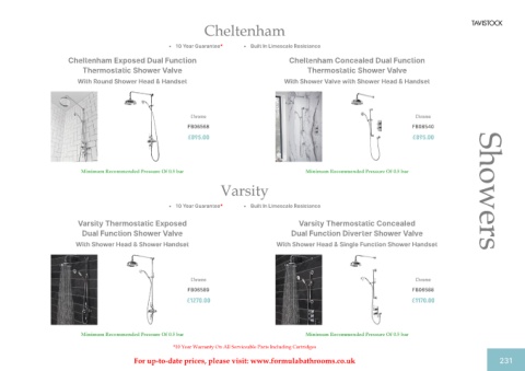 For up-to-date prices, please visit: www.formulabathrooms.co.uk 231