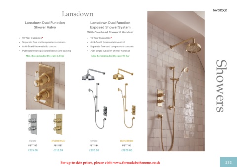 For up-to-date prices, please visit: www.formulabathrooms.co.uk 233