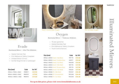 For up-to-date prices, please visit: www.formulabathrooms.co.uk 243