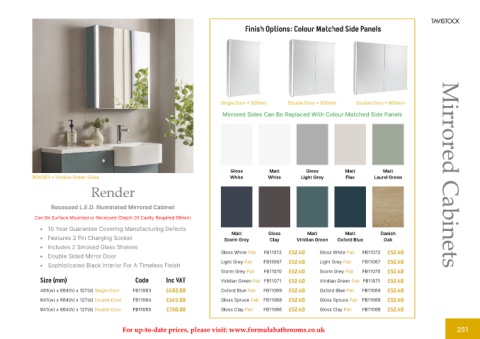 For up-to-date prices, please visit: www.formulabathrooms.co.uk 251