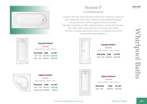 www.formulabathrooms.co.uk Whirlpool Baths 281
