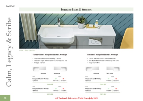 Standard Depth Integrated Basins & Worktops Slim Depth Integrated Basins & Worktops