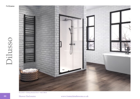 Dilusso DILUSSO • Sliding Recess Door • Matt Black 86 Shower Enclosures www.formulabathrooms.co.uk