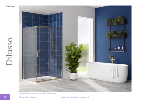 Dilusso DILUSSO • Sliding Corner with Side Panel • Brushed Brass 88 Shower Enclosures www.formulabathrooms.co.uk