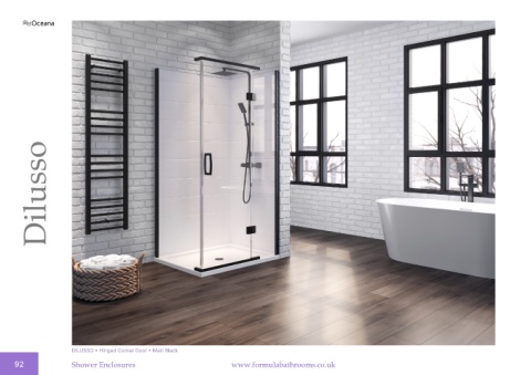 Dilusso DILUSSO • Hinged Corner Door • Matt Black 92 Shower Enclosures www.formulabathrooms.co.uk